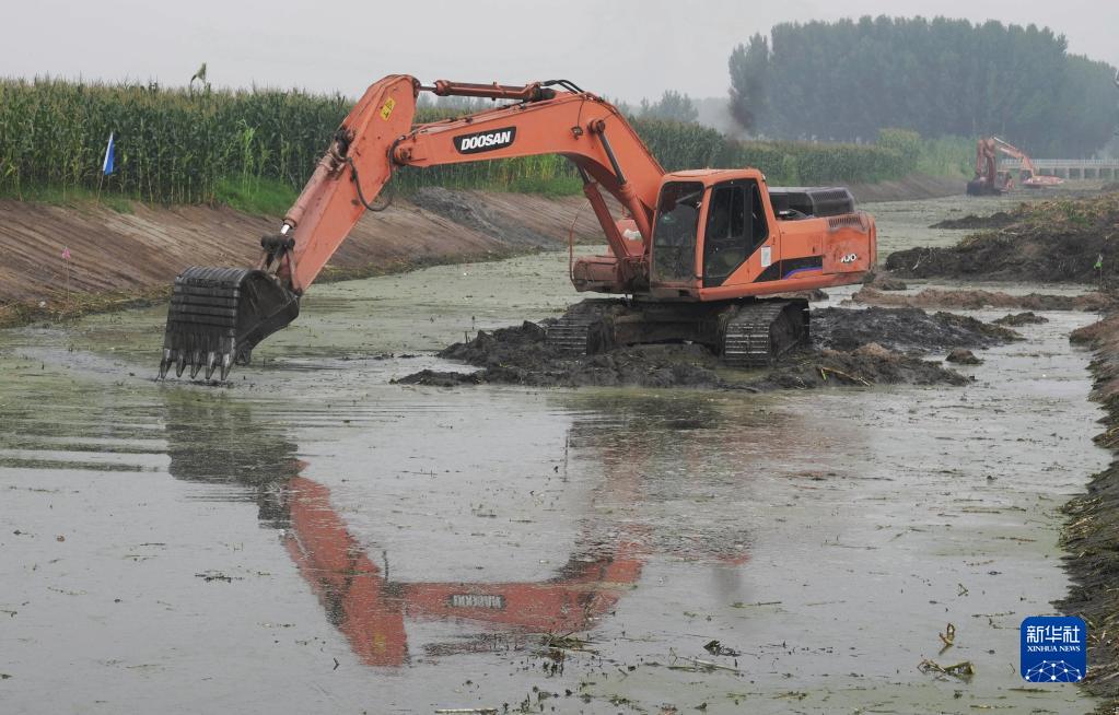 8月6日,工人在昌黎縣新集鎮境內的引灤河水灌渠清淤現場(chǎng)施工。