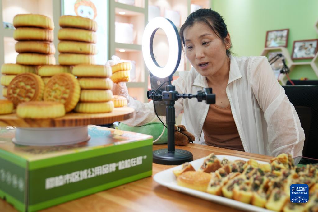 8月3日,主播在穆棱市電商公共服務(wù)中心直播間直播售貨。