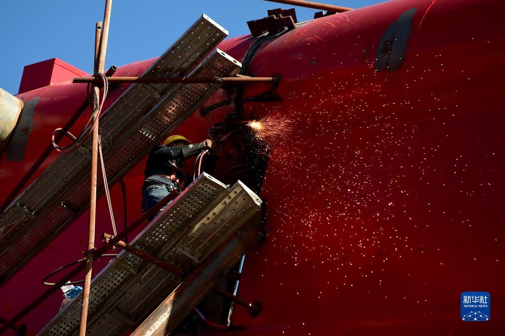 8月6日,工人在中鐵十一局池黃鐵路云山特大橋工地進(jìn)行焊接作業(yè)。
