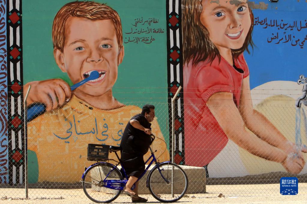 8月2日,一名男子在約旦扎塔里敘利亞難民營(yíng)騎車(chē)。