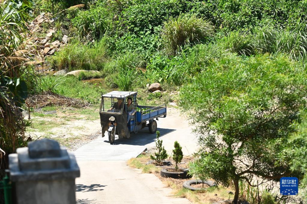 8月5日,在福鼎市崳山島,汪淇和父親開(kāi)著(zhù)載有玉米桿的三輪摩托車(chē)去羊舍。