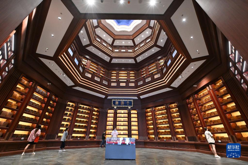 7月30日,觀(guān)眾在中國國家版本館中央總館文瀚廳內參觀(guān)。中國國家版本館是國家版本資源總庫和中華文化種子基因庫,開(kāi)館后將全面履行國家版本資源保藏傳承職責??偡逐^分別選址北京燕山、西安秦嶺圭峰山、杭州良渚、廣州鳳凰山,各館均設置了展示區、保藏區、洞藏區、交流區等。