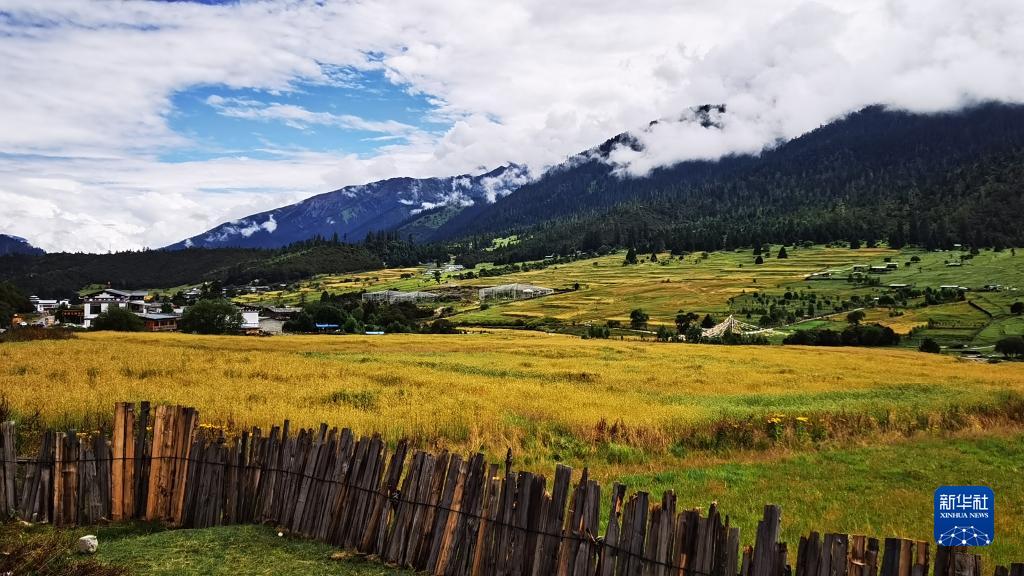 夏日的魯朗鎮,溪水潺潺,鮮花盛開(kāi),藏式村寨點(diǎn)綴其間,勾畫(huà)出一幅恬靜、優(yōu)美的“高原山居圖”。