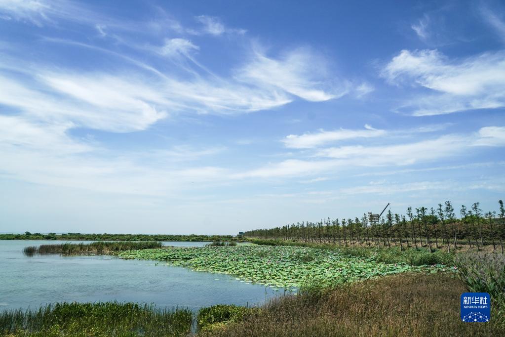 8月7日拍攝的武進(jìn)區的滆湖近岸帶水生態(tài)修復暨滆湖退田還湖二期工程(無(wú)人機照片)。