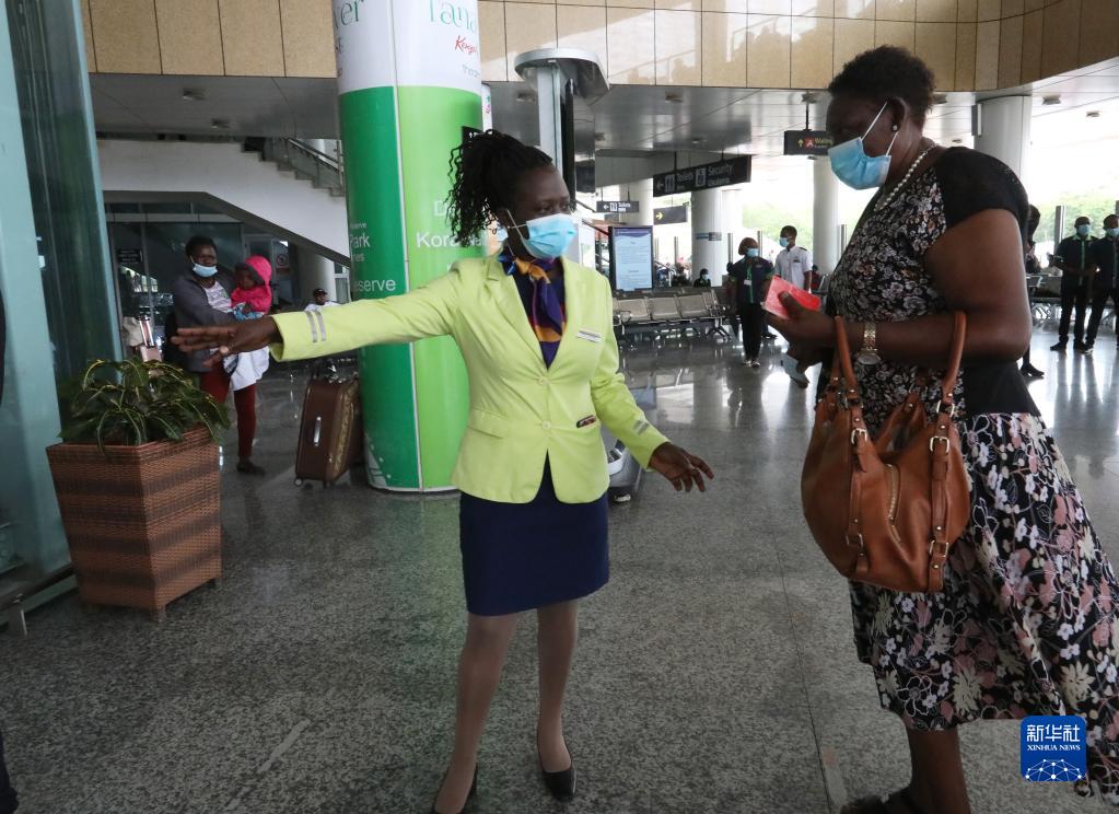 7月27日,客運員莫妮卡(左)在肯尼亞蒙內鐵路蒙巴薩終點(diǎn)站引導乘客乘坐電梯。