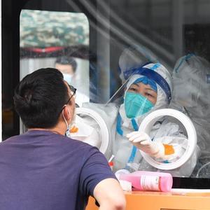 8月7日,居民在??谑旋埲A區萬(wàn)象城采樣點(diǎn)登記信息。