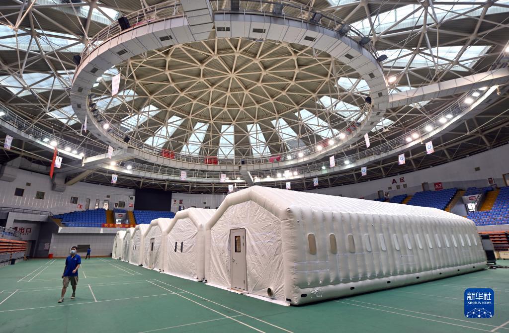 8月7日,由廣東省援海南三亞核酸檢測隊負責搭建的氣膜核酸檢測實(shí)驗室通過(guò)驗收。這是搭建完畢的氣膜核酸檢測實(shí)驗室。