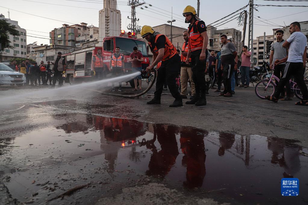 8月7日,人們在加沙城清理以色列空襲后的街道。新華社發(fā)(里澤克攝)