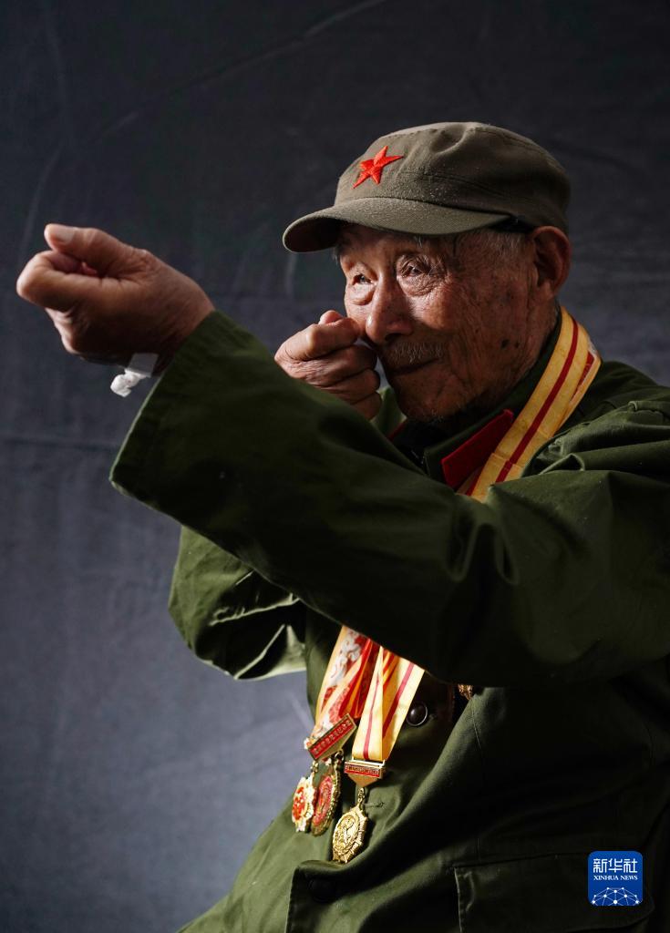 6月17日,在江蘇省宿遷市泗陽(yáng)縣,抗戰老戰士殷道傳講述抗戰故事。