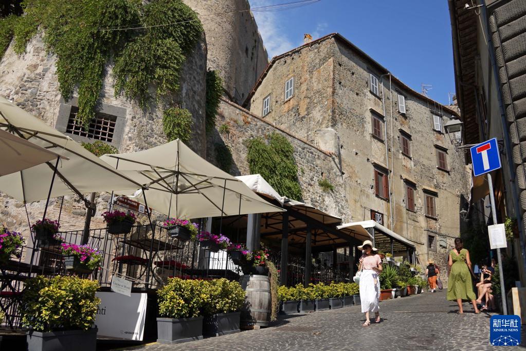 8月7日,游客在意大利布拉恰諾觀(guān)光。
