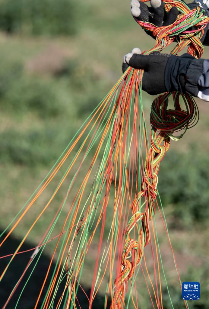 陳瑞峰收拾整理傘具(5月21日攝)。新華社記者 胡虎虎 攝