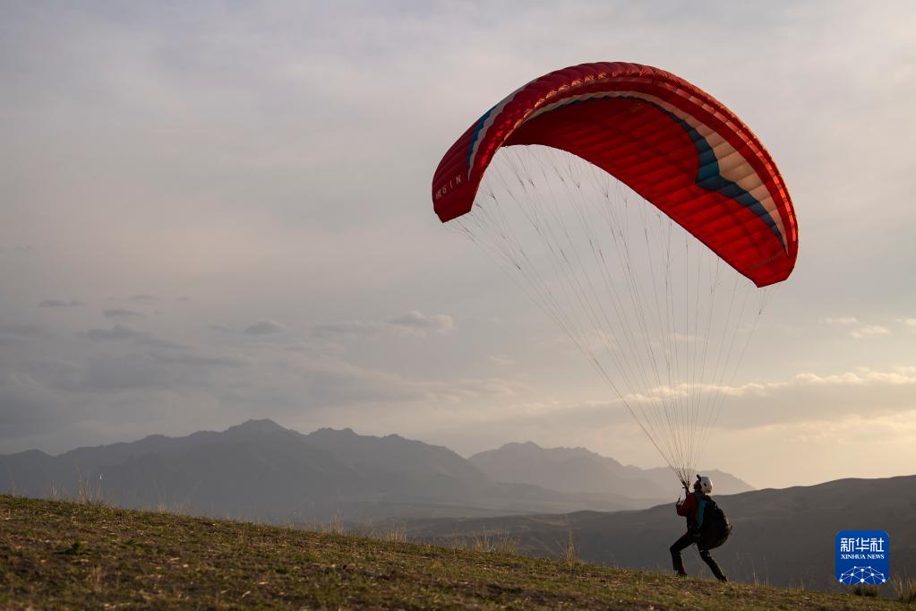 在新疆烏魯木齊市南郊山間,陳瑞峰在進(jìn)行飛行訓練(6月11日攝)。新華社記者 胡虎虎 攝