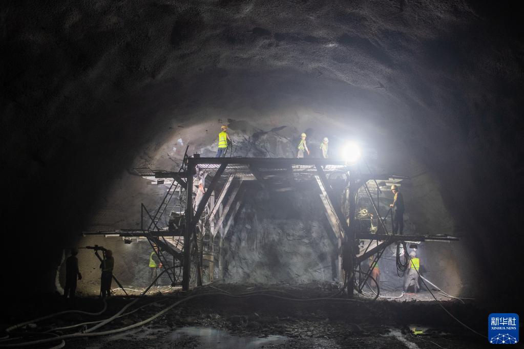 8月9日,在衡永高速祁山隧道,工人做爆破施工前的準備工作。