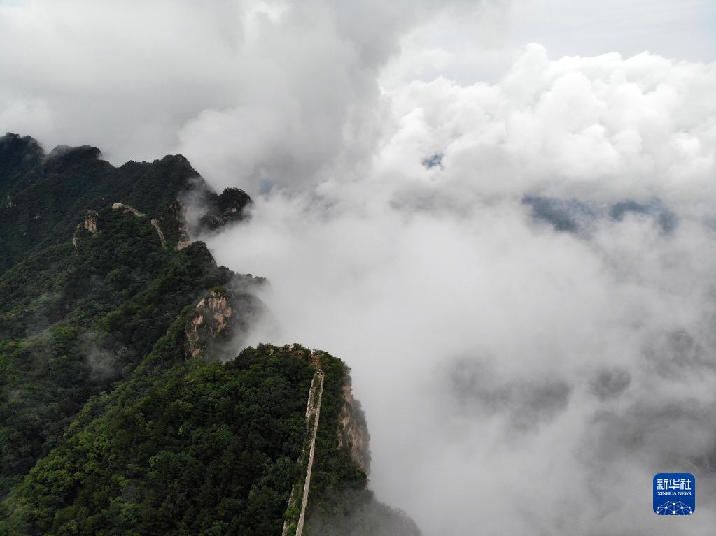 8月9日拍攝的金山嶺長(cháng)城云海景觀(guān)(無(wú)人機照片)。