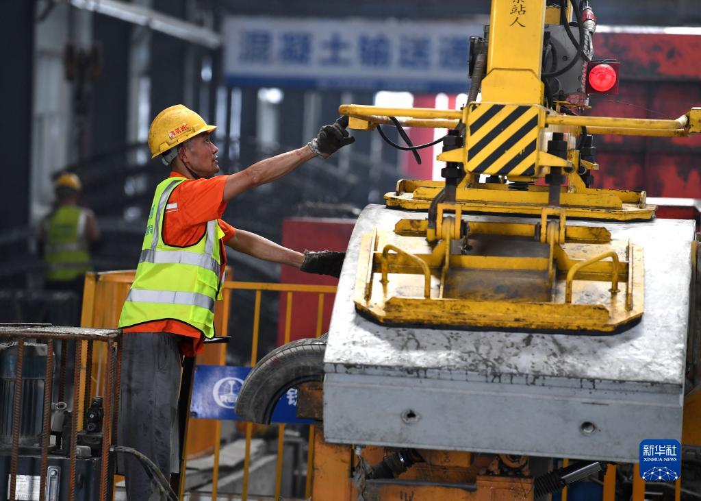8月9日,工人在中鐵四局安徽智能制造有限公司盾構管片制造基地忙碌。
