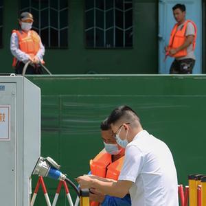 8月9日,長(cháng)江三峽通航管理局工作人員為船員講解岸電充電樁的使用方法。