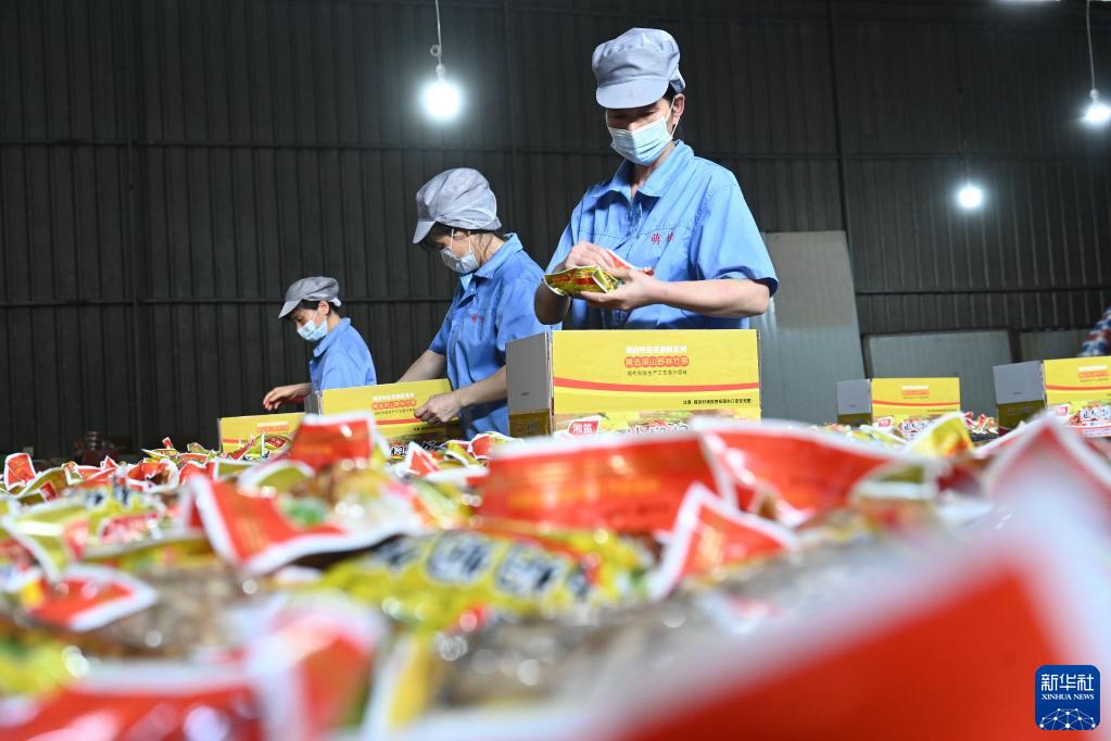 8月9日,建甌市迪口安然筍竹專(zhuān)業(yè)合作社工人在包裝竹筍加工產(chǎn)品。