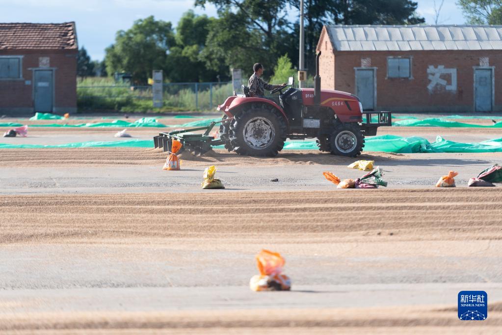 8月10日,在北大荒集團紅星農場(chǎng)有限公司一曬場(chǎng),職工在晾曬小麥。
