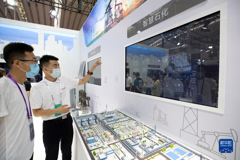 8月11日,在2022世界5G大會(huì )展廳里,參展商介紹5G網(wǎng)絡(luò )支持下的5G智慧石化平臺。