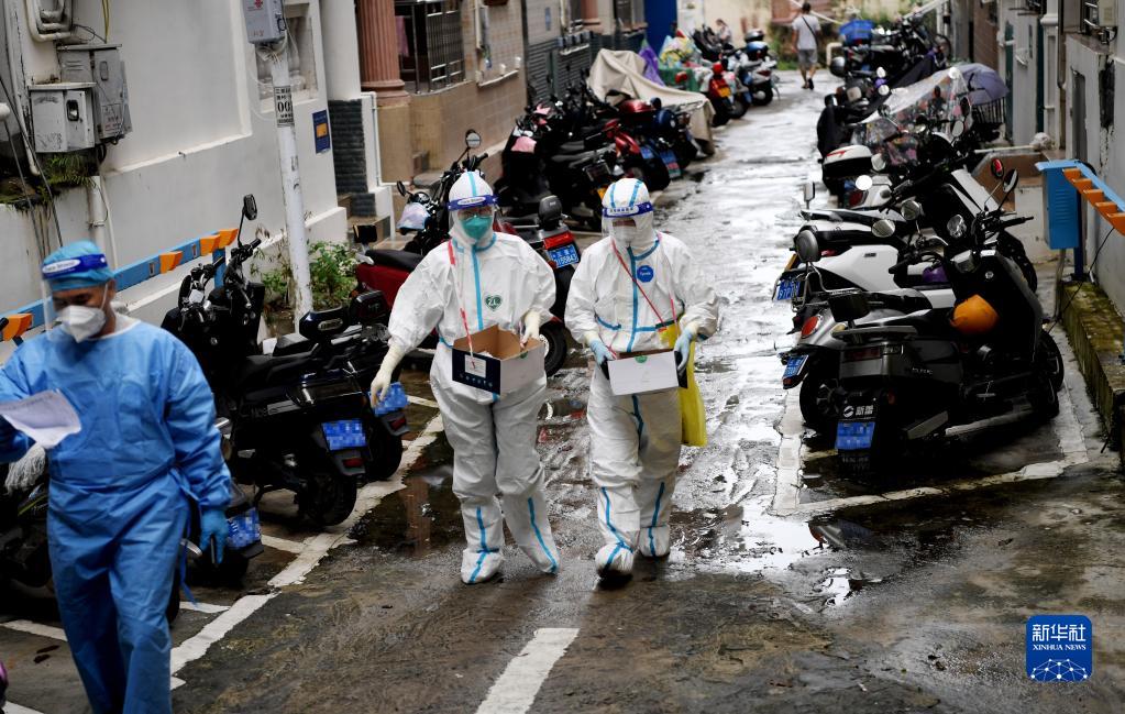 8月11日,在三亞市天涯區南邊海漁村,河南省援海南三亞醫療隊的醫護人員入戶(hù)為群眾做核酸檢測。