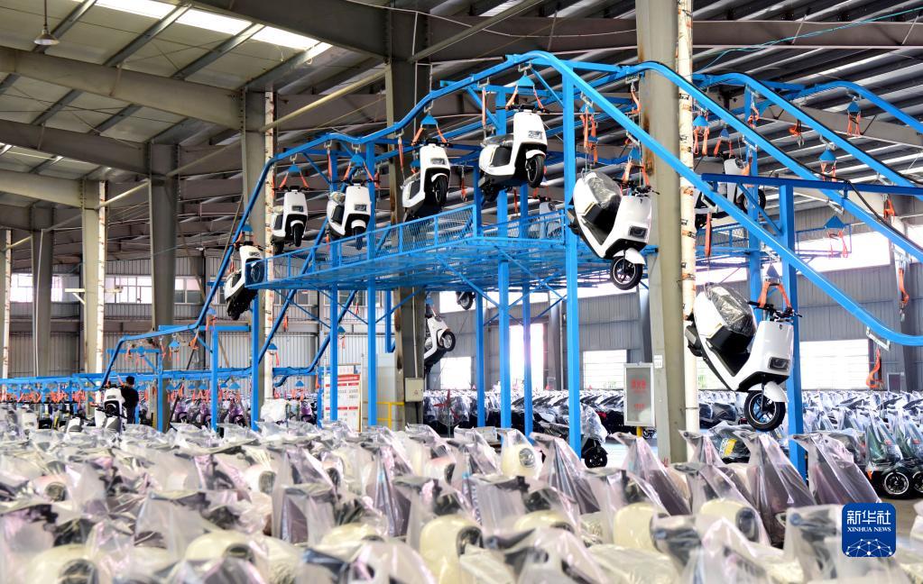 8月11日在河南省汝南縣拍攝的一家新能源電動(dòng)車(chē)企業(yè)生產(chǎn)線(xiàn)。