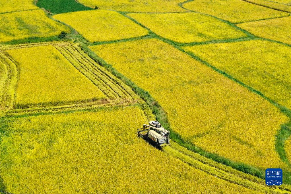 近日,水稻進(jìn)入收獲期,各地農民抓緊農時(shí)收獲、晾曬稻谷。