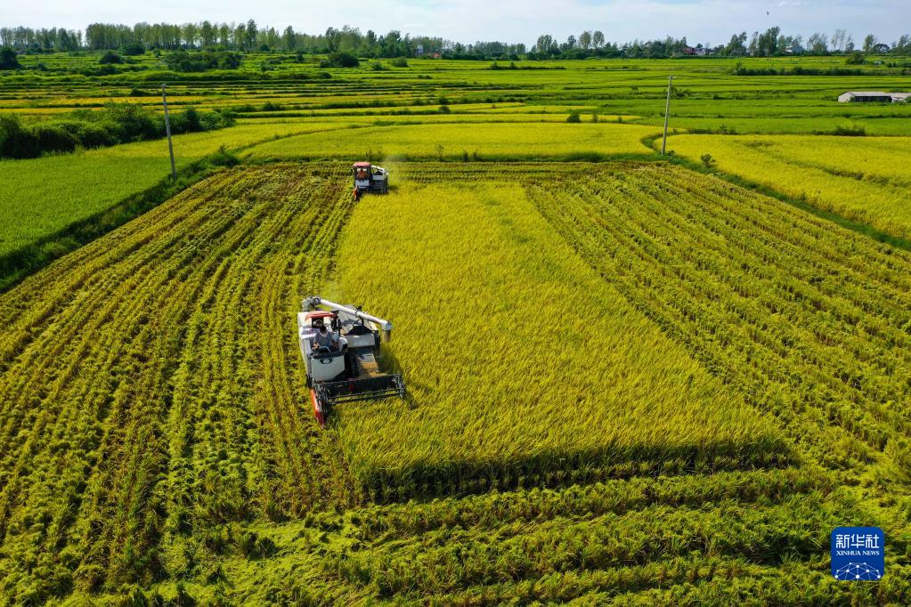 近日,水稻進(jìn)入收獲期,各地農民抓緊農時(shí)收獲、晾曬稻谷。