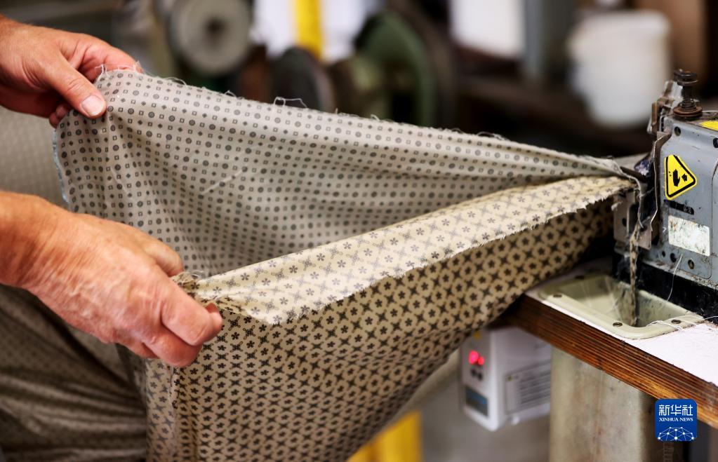 8月11日,工人在英國麥克爾斯菲爾德一家絲綢工廠(chǎng)內工作。