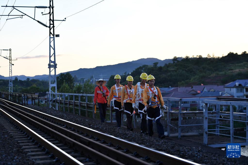 8月11日,橋隧工結束滬昆鐵路新舞水鋼梁橋巡檢作業(yè)后返回工區。