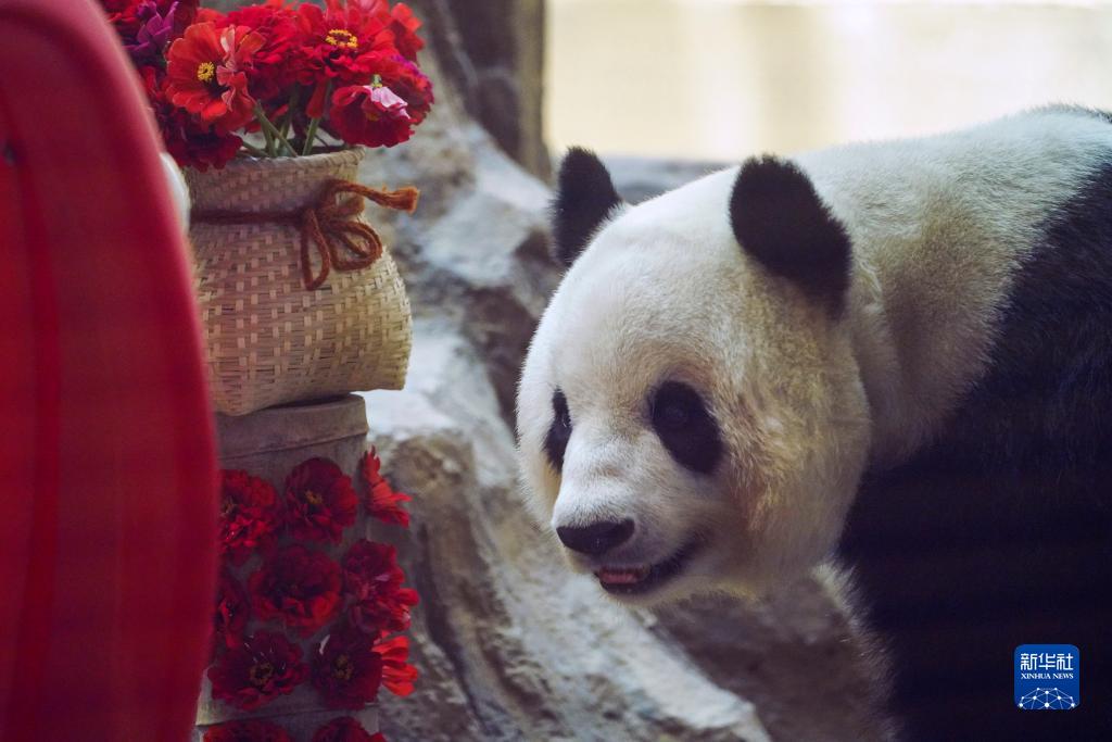 當日,位于黑龍江省尚志市的中國亞布力熊貓館里,大熊貓思嘉度過(guò)了自己16歲生日。飼養員為思嘉準備了用冰做的生日蛋糕、水果、鮮竹筍等美食,還有玩具和鮮花,思嘉在自己的生日派對上邊吃邊玩,萌態(tài)十足。