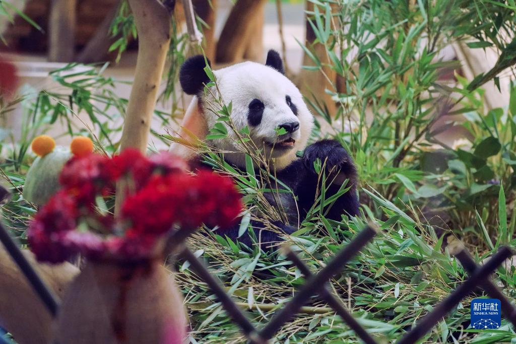 當日,位于黑龍江省尚志市的中國亞布力熊貓館里,大熊貓思嘉度過(guò)了自己16歲生日。飼養員為思嘉準備了用冰做的生日蛋糕、水果、鮮竹筍等美食,還有玩具和鮮花,思嘉在自己的生日派對上邊吃邊玩,萌態(tài)十足。