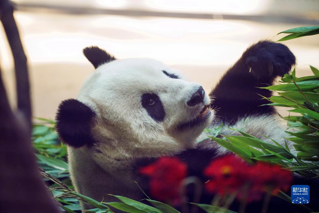 當日,位于黑龍江省尚志市的中國亞布力熊貓館里,大熊貓思嘉度過(guò)了自己16歲生日。飼養員為思嘉準備了用冰做的生日蛋糕、水果、鮮竹筍等美食,還有玩具和鮮花,思嘉在自己的生日派對上邊吃邊玩,萌態(tài)十足。