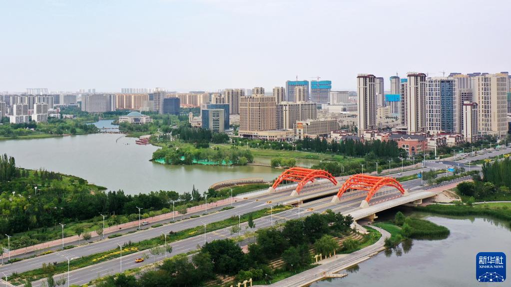 這是8月10日拍攝的蘭州新區城市面貌(無(wú)人機照片)。