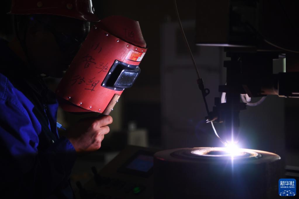 工人在蘭州新區蘭石集團高端裝備產(chǎn)業(yè)園車(chē)間內作業(yè)(8月11日攝)。