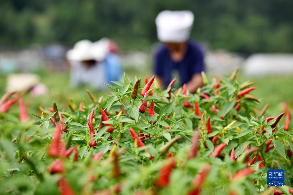 立秋過(guò)后,貴州省黔南布依族苗族自治州龍里縣灣灘河鎮辣椒迎來(lái)采摘季,當地群眾忙著(zhù)采摘、搬運、分裝、加工辣椒,供應市場(chǎng)。