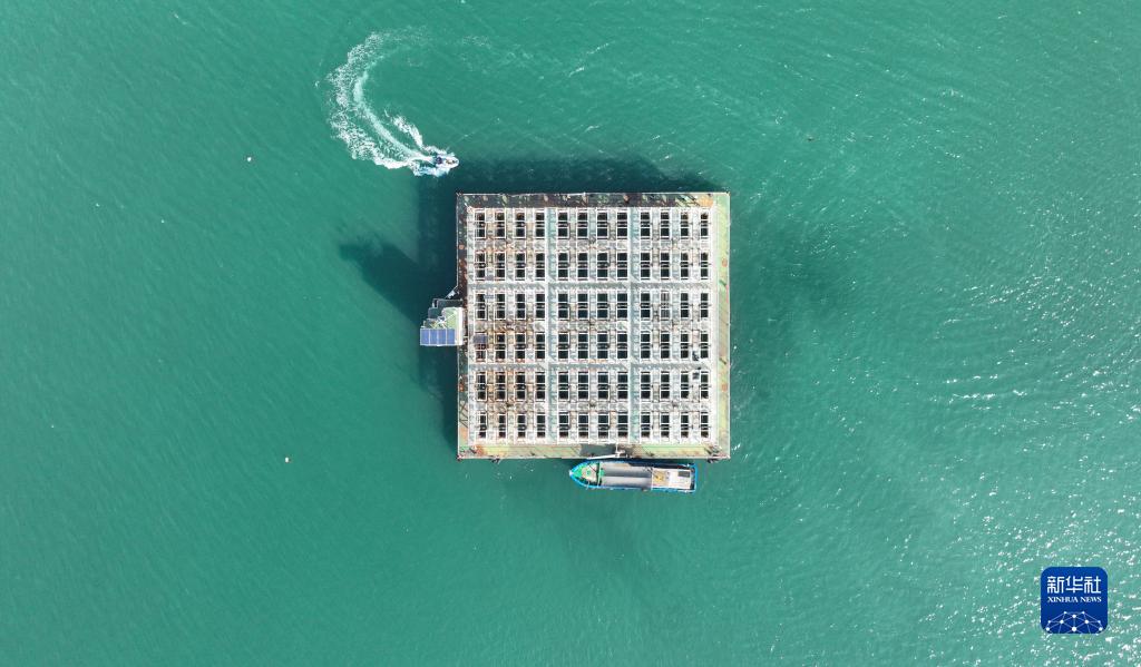 這是8月12日拍攝的連江縣深海鮑魚(yú)機械化養殖平臺“福鮑1號”(無(wú)人機照片)。