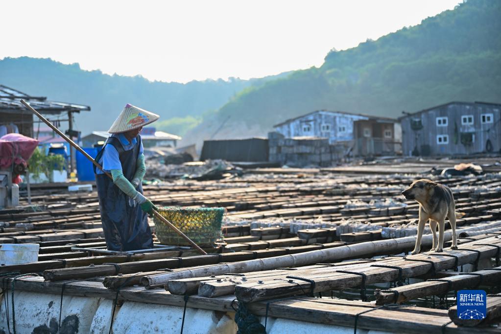 8月12日,連江縣苔菉鎮東洛村村民在漁排上養殖鮑魚(yú)。在連江縣苔菉鎮東洛村,當地鮑魚(yú)加工企業(yè)收購村民養殖的鮑魚(yú),并為鄉鎮投資打造深海鮑魚(yú)機械化養殖平臺,實(shí)現傳統養殖業(yè)向深遠海、智能化發(fā)展。