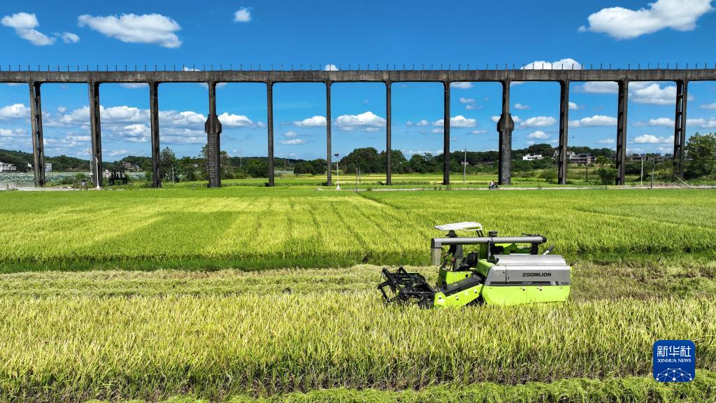 眼下,湖南省常寧市的中稻進(jìn)入收割期。當地農民搶抓晴好天氣忙收獲,確保顆粒歸倉。