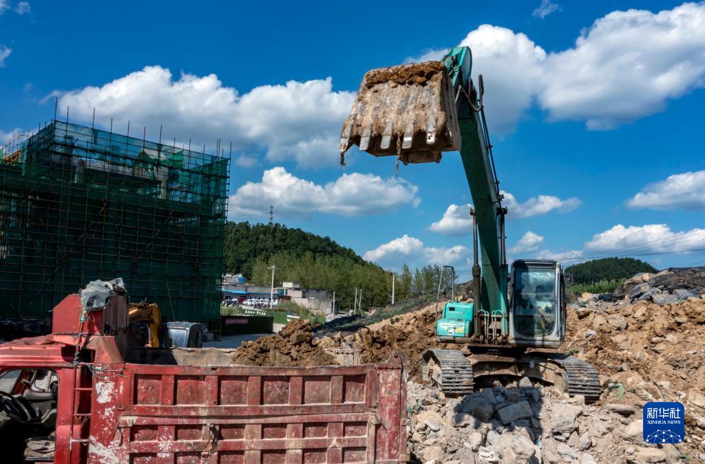 8月13日,工人在黔西市棚戶(hù)改造項目工地施工作業(yè)(無(wú)人機照片)。