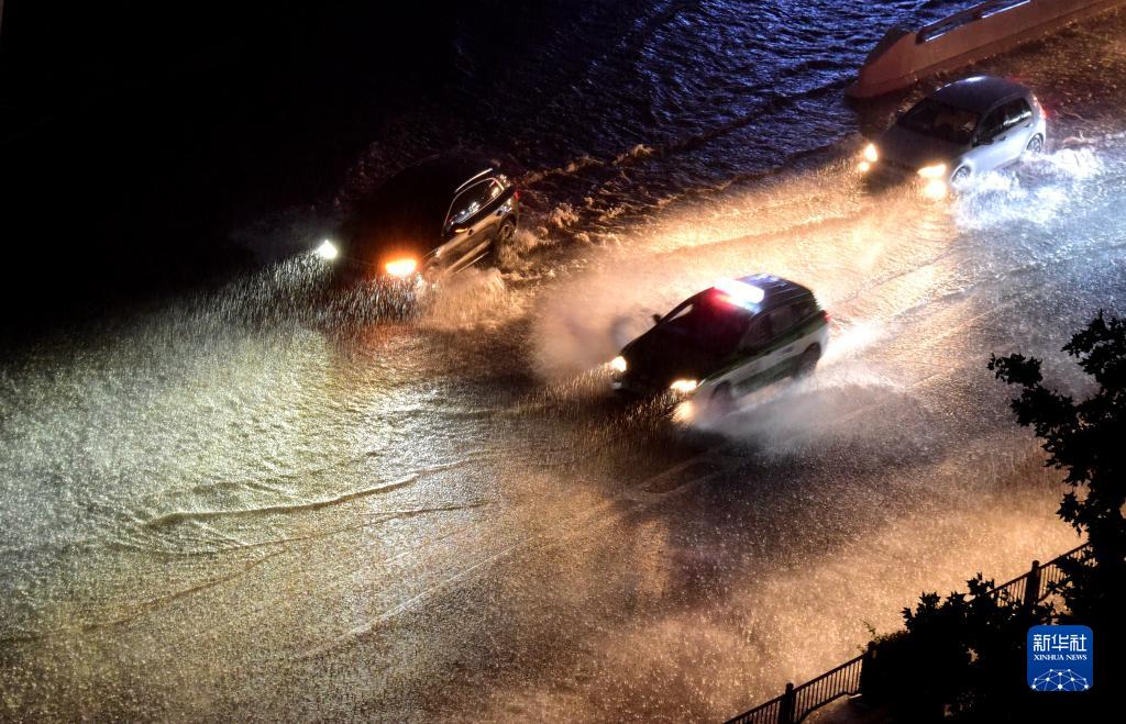 8月8日,汽車(chē)在鄭州市花園路上涉水行駛。