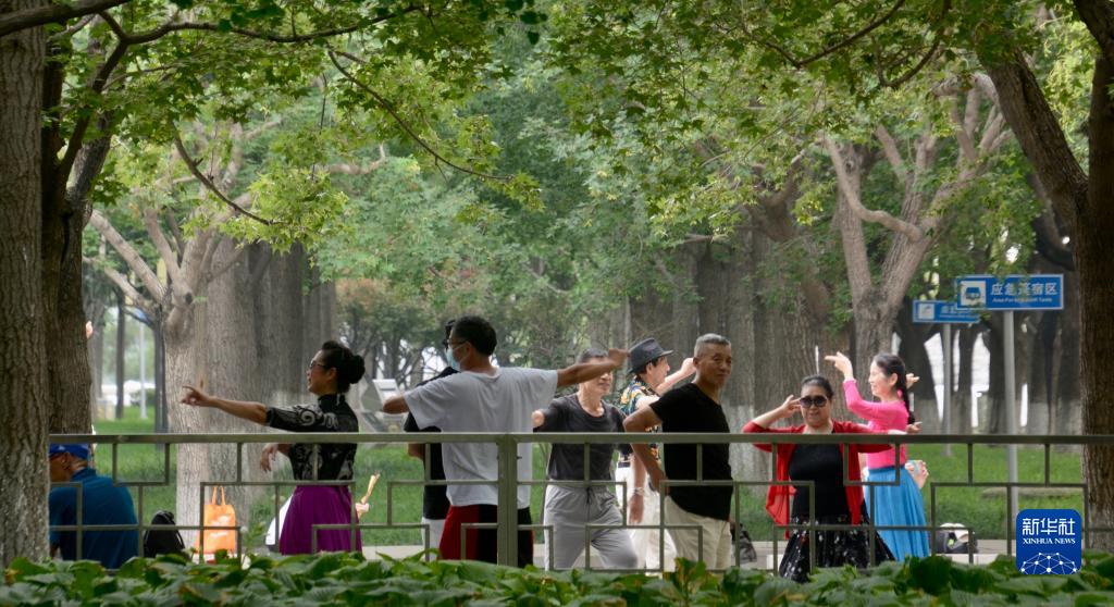 8月13日,市民在南中軸線(xiàn)御道景觀(guān)區內的公園中休閑。