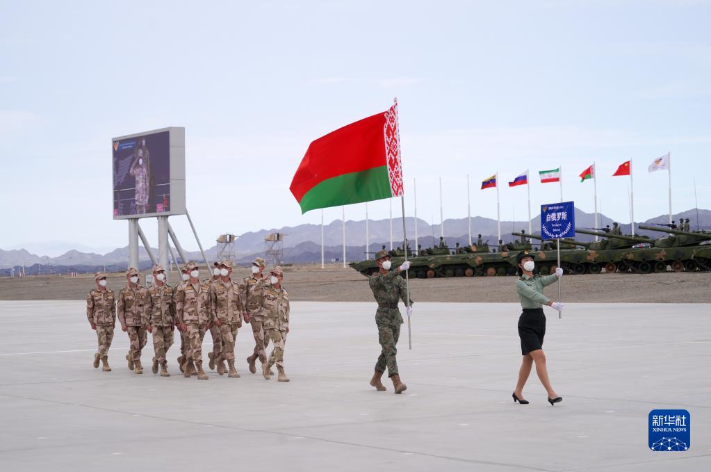 8月13日,“國際軍事比賽-2022”中國庫爾勒賽區比賽開(kāi)幕,白俄羅斯參賽隊走過(guò)主席臺。新華社發(fā)(欒鋮 攝)
