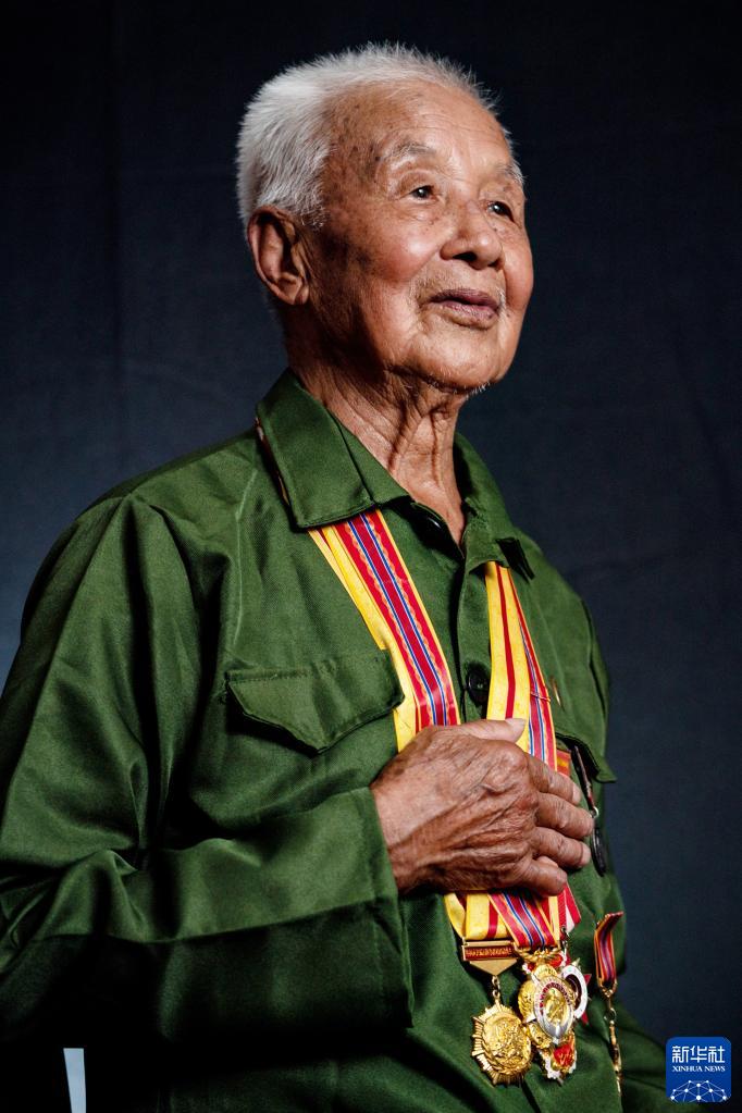 6月21日在江蘇省泰興市拍攝的抗戰老戰士陳喬。新華社記者 李博 攝