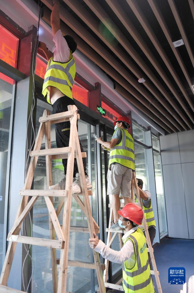 8月14日,工人在三亞第三方艙醫院作業(yè)。