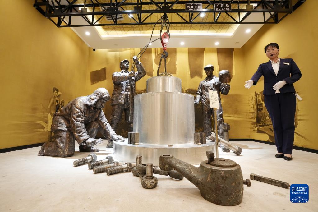 8月11日,在鏡泊湖發(fā)電廠(chǎng)的紅色主題展館內,講解員介紹1946年在中國共產(chǎn)黨領(lǐng)導下,工人修復發(fā)電廠(chǎng)的情況。
