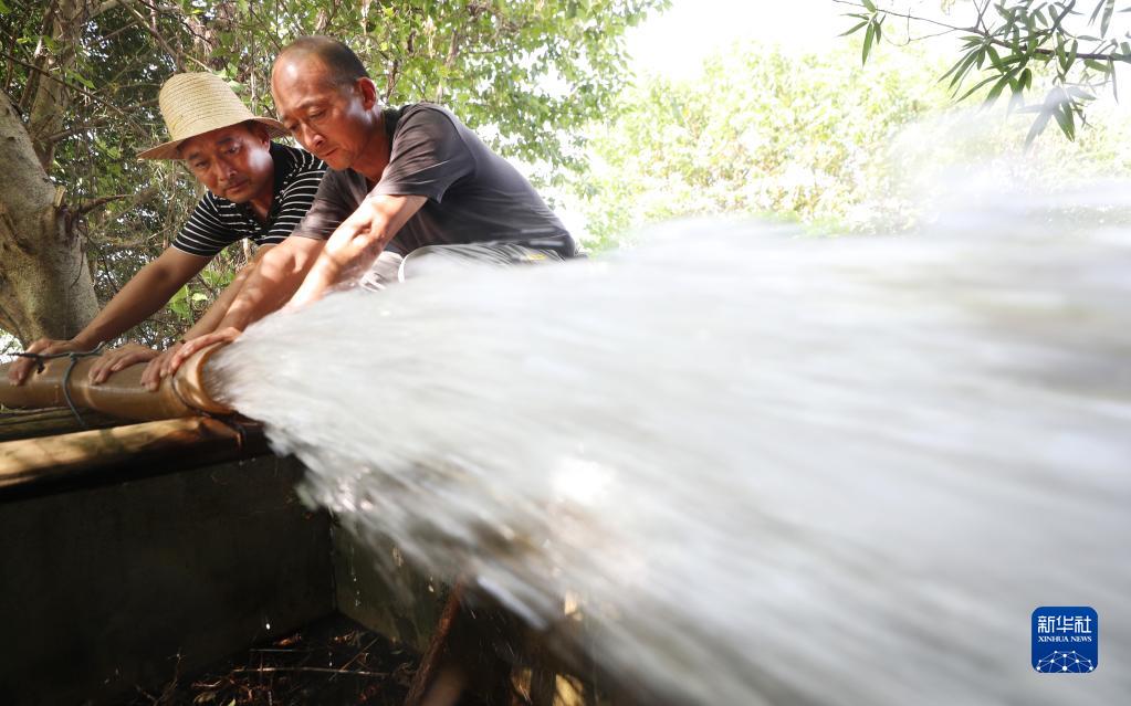 8月14日,湖南省衡陽(yáng)市衡東縣霞流鎮大源渡村村民在灌溉農田。