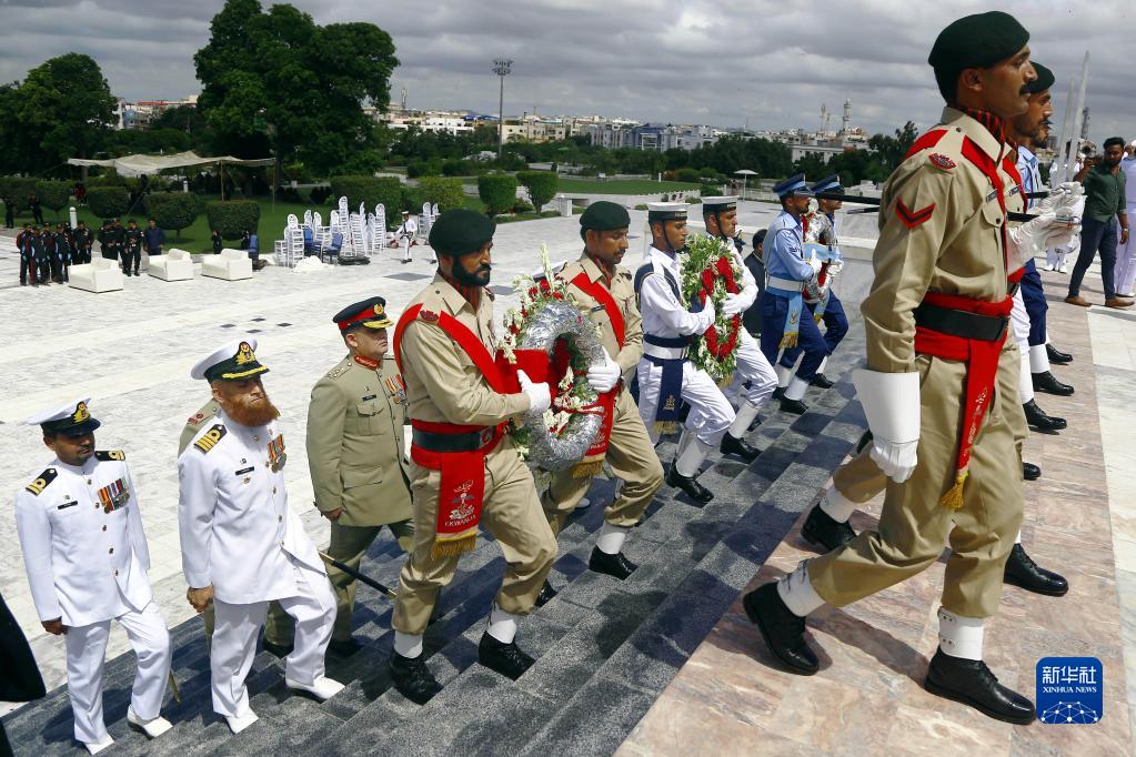 8月14日,士兵在巴基斯坦卡拉奇參加獨立日慶?;顒?dòng)。