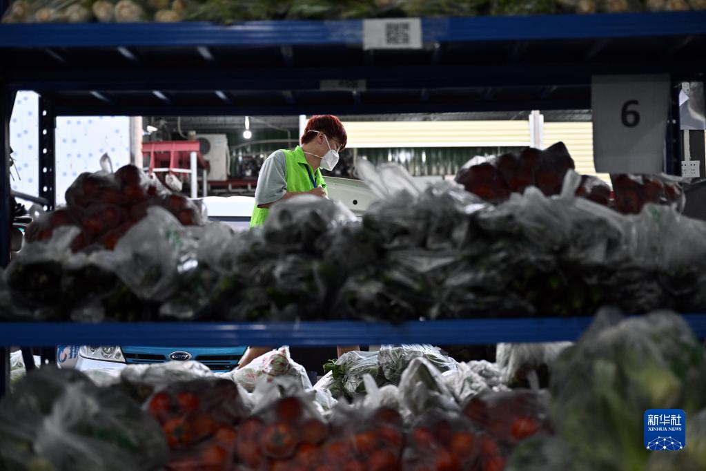 8月14日,張海洋在物資配送網(wǎng)點(diǎn)配貨。