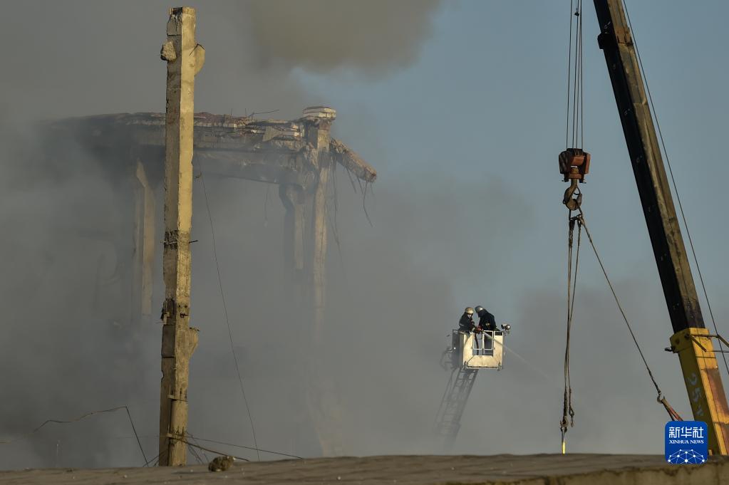 8月14日,消防人員在亞美尼亞首都埃里溫的購物中心爆炸現場(chǎng)工作。