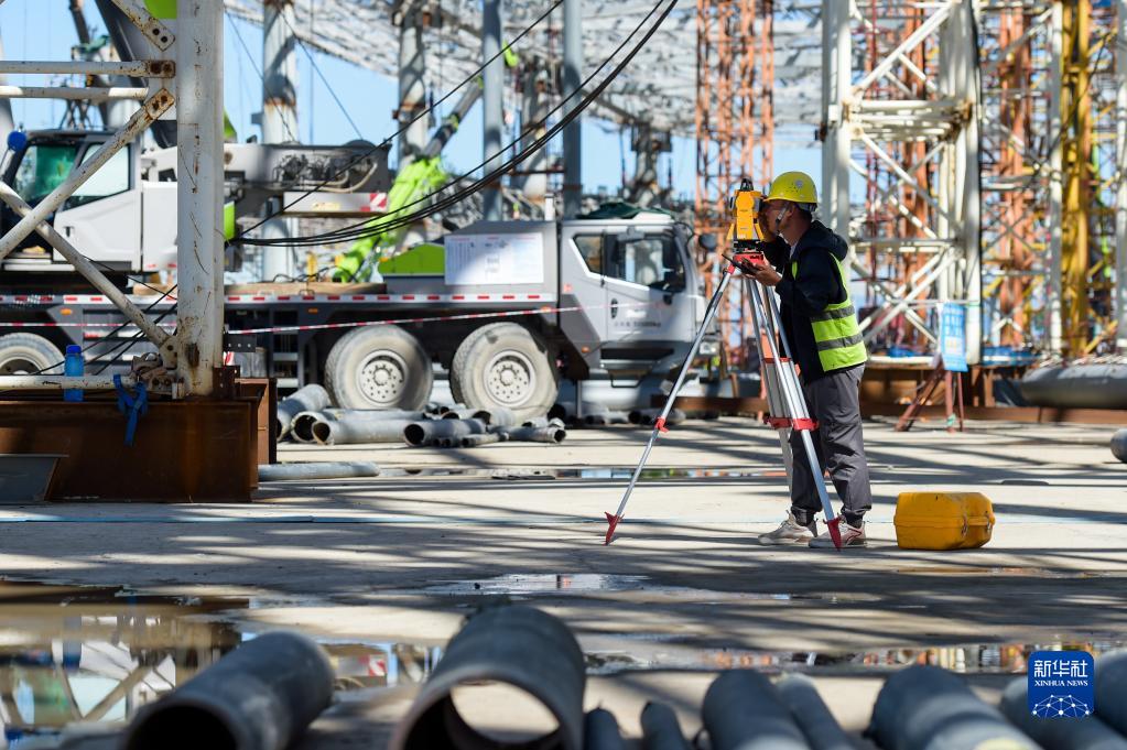 8月15日,工人在呼和浩特新機場(chǎng)工程施工現場(chǎng)作業(yè)。